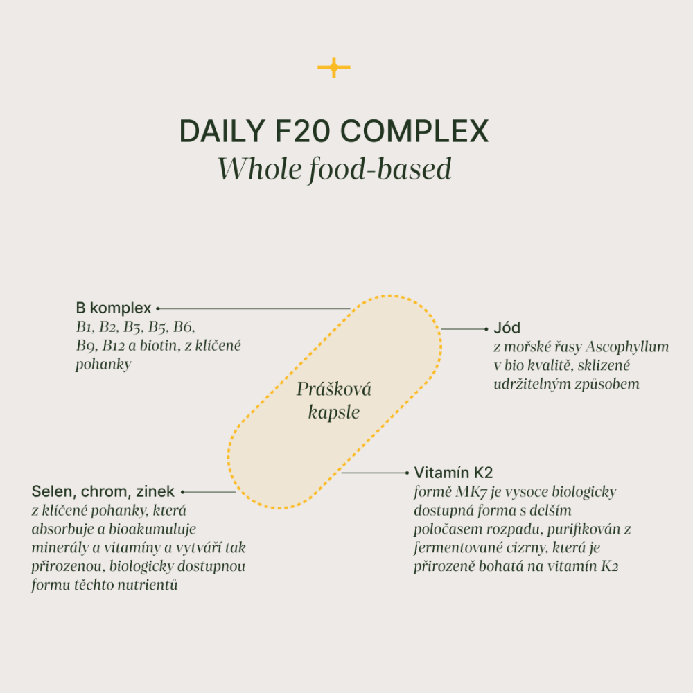 Komplexní balíček obsahující bylinky, důležité vitamíny a minerály. Sestavený pro podporu zdraví, energii, krásu a psychickou pohodu. Multivitamin Daily F20 Complex od Trime zajistí příjem nejpostrádanějších látek, ashwagandha podporuje naši psychickou vyrovnanost a zvyšuje odolnost proti stresu. Magnesium malát je vynikajícím zdrojem hořčíku s vynikající biologickou dostupností, pro energii a psychickou odolnost. Více